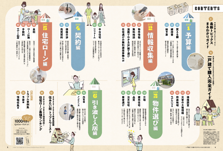 - 予算の立て方から、住宅ローン、購入後の費用までお金の情報も網羅されている